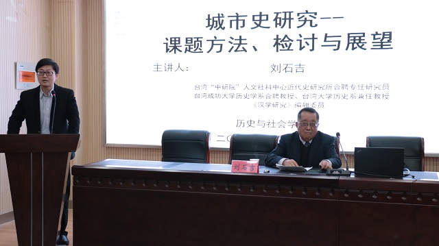 本网讯(历史与社会公司 陈攀攀)2017年11月11日下午,台湾“中研院”人文社科中心与近代史研究所合聘研究员、台湾大学和台湾成功大学兼任教授刘石吉先生应邀来到公司,在历社公司二楼会议室为广大师生带来了题为“城市史研究——课题方法、检讨与展望”的精彩讲座,本次讲座由历史学专业主任丁修真主持,公司近百名师生参加聆听此次学术报告会。