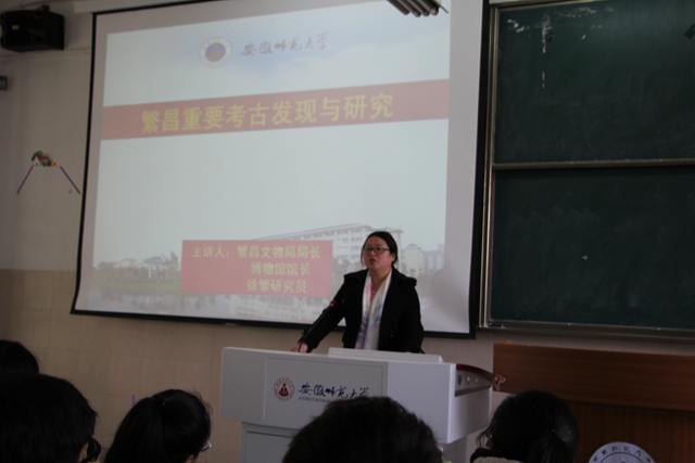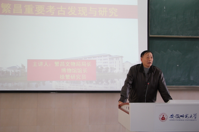 本网讯(15历史黄冰、李蒙)3月16日下午,繁昌文化局局长、繁昌博物馆馆长徐繁研究员受邀为院师生作了一场题为“繁昌重要考古发现和研究”的专题报告。报告会于下午三点在公司教学楼2050102教室举行,出席此次讲座的还有历史与社会公司教学副经理赵怀娟教授,公司袭士教授主持此次报告会。