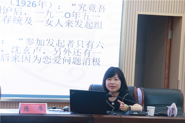 陈雁教授的报告以女性视角切入,认为以往对中共“一大”的研究基本是清一色的男性历史,中国女性在中共早期建党史中被完全隐形,这与当时各地共产主义、社会主义团体中女性成员所占比例与活跃程度明显不符,主要依靠回忆和口述建构起来的中共早期建党史充满着“社会性别化的记忆”,这些“记忆”需要被重新发掘和重新解读。陈教授通过对相关回忆录、口述访谈史料的发掘与整理,借用社会性别理论和叙事分析方法,利用20世纪20年代中国左翼妇女的记忆和叙事来对党史展开微观研究。