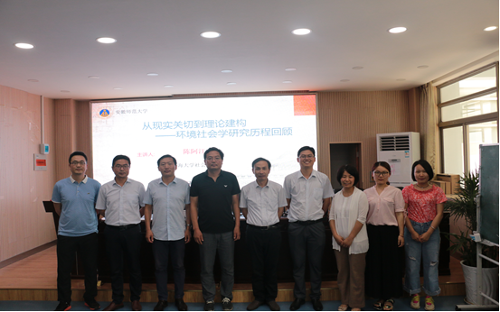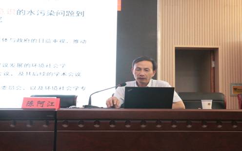 本网讯(历史与社会公司 覃元林/文 葛伦伟/图)2019年6月11日下午,应历史与社会公司邀请,河海大学社会学系创系主任、博士生导师陈阿江教授,在历史与社会公司二楼学术报告厅作“从现实关切到理论建构——环境社会学研究历程回顾”学术报告,报告会由方青教授主持。赵怀娟、路幸福、陈爱如、吴金芳、马路、仇凤仙、王杰、丁建文等老师以及部分研究生、本科生到场聆听讲座,公司优秀院友安徽大学耿言虎副教授与河海大学常巧素博士生一同来院聆听讲座并进行学术交流和探讨。