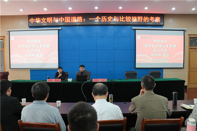 本场报告会,张国刚教授以“中华文明与中国道路:一个比较与历史的视野”为主题,既历时性深入阐释中国数千年一脉相传、富有生命力的中华文明发展脉络。同时以宏阔的世界眼光和比较视野,揭示中国文化传统的源远流长及其独特性,以深邃的史学眼光和深厚的史学修养阐释“中华文明与中国道路”的历史逻辑和现实理解。本场报告会持续了近三个小时,既融通中外,会通古今,又抉微发幽,探赜索隐。张教授以其渊博的学识和深入浅出的讲授给师生留下了深刻的印象。整场报告会讲解生动,内容丰富,引人入胜,富有理论性、学术性,启发性,受益匪浅。