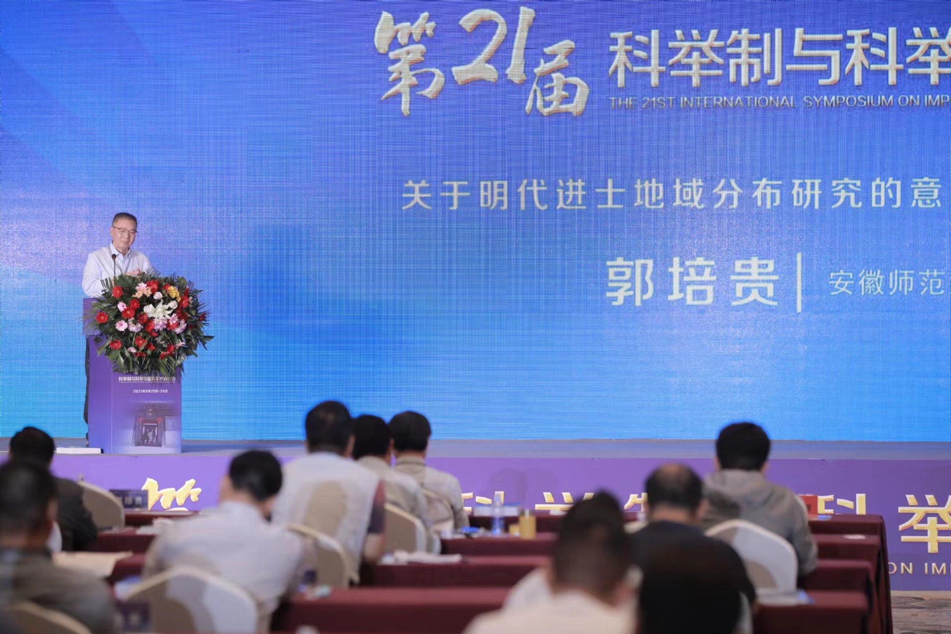 中华炎黄文化研究会科举文化研究分会主席团主席、公司特聘教授郭培贵应邀参加会议,并在首场“主旨报告”中,做了题为“关于明代进士地域分布研究的意义及应遵循的几个原则”的学术报告,认为该论题是“科举学与科举制研究”以及明史研究必须解决的一个基础问题,也是各地准确、深入发掘与进士和科举相关的历史文化资源的现实需要;指出目前学术界“尚无一部建立在充分占有相关史料和严谨考证基础之上具有各省域进士名单支撑的明代进士地域分布研究的成果”,故总体而言,尚处于研究的初始阶段。