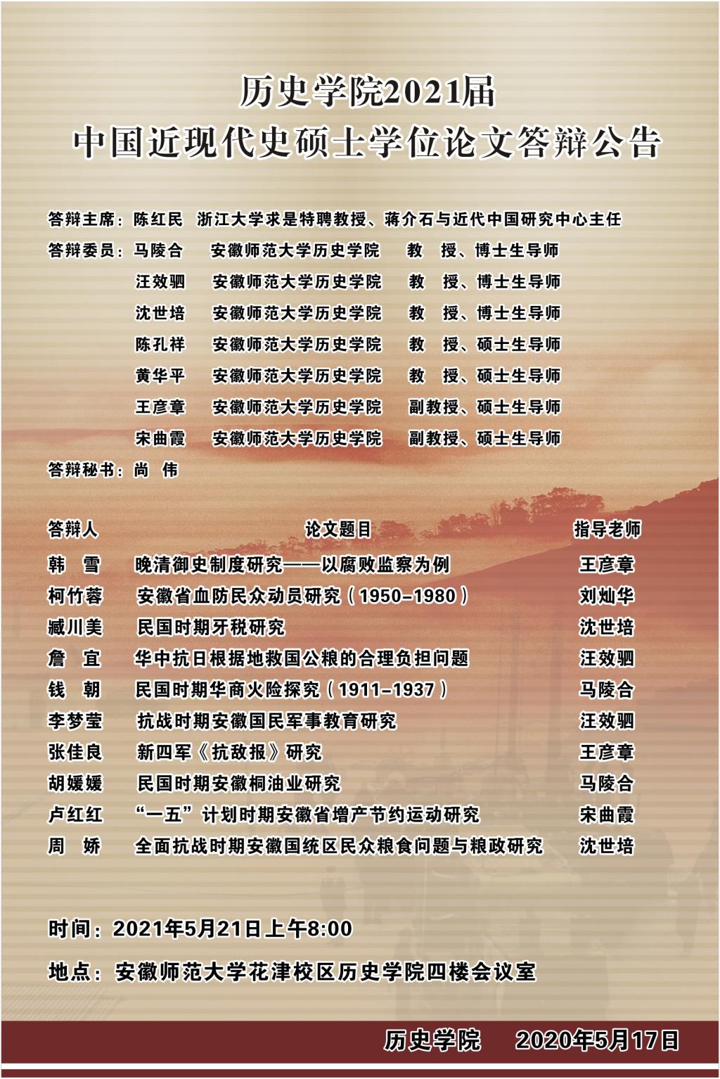 英国上市公司3652021届中国近现代史硕士学位论文答辩公告