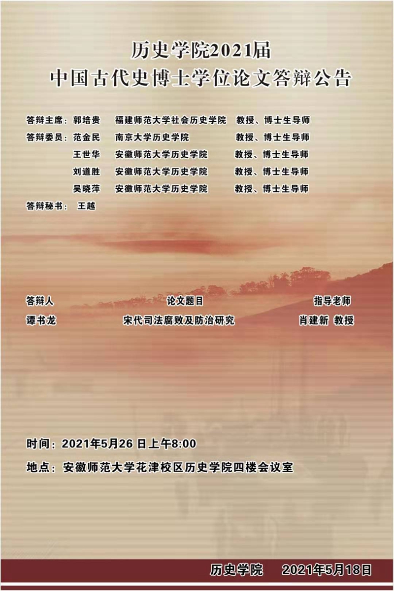 英国上市公司3652021届中国古代史博士学位论文答辩公告