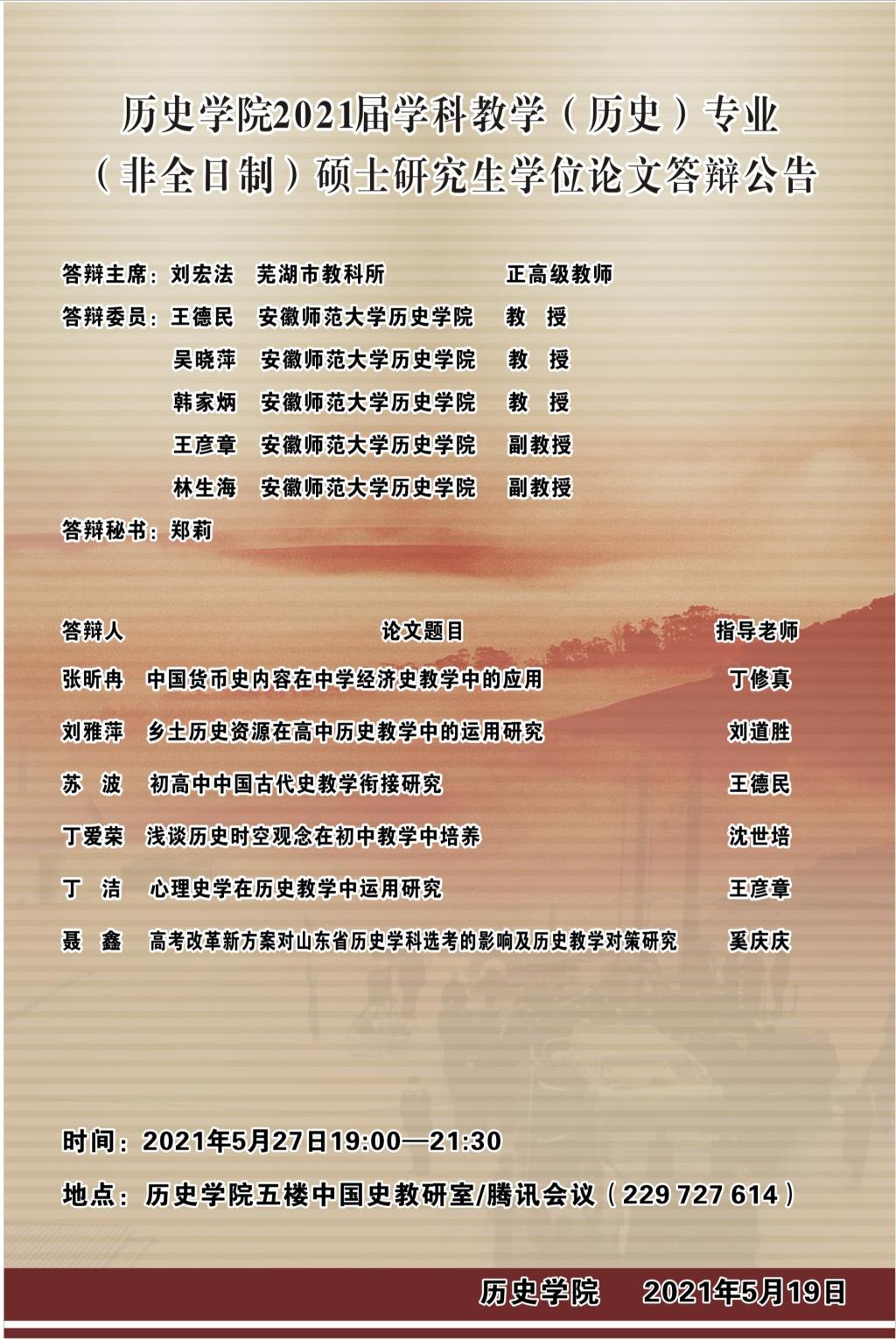 英国上市公司3652021届中国史(小方向)专业硕士学位论文答辩公告