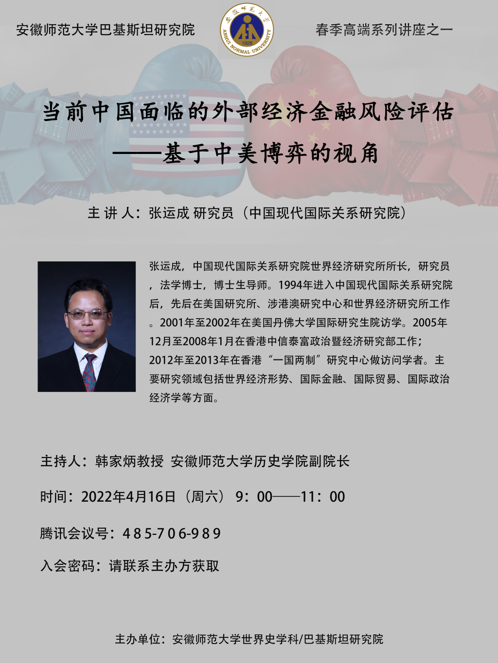【学术预告】当前中国面临的外部经济金融风险评估—基于中美博弈的视角(中国现代国际关系研究院 张运成研究员)