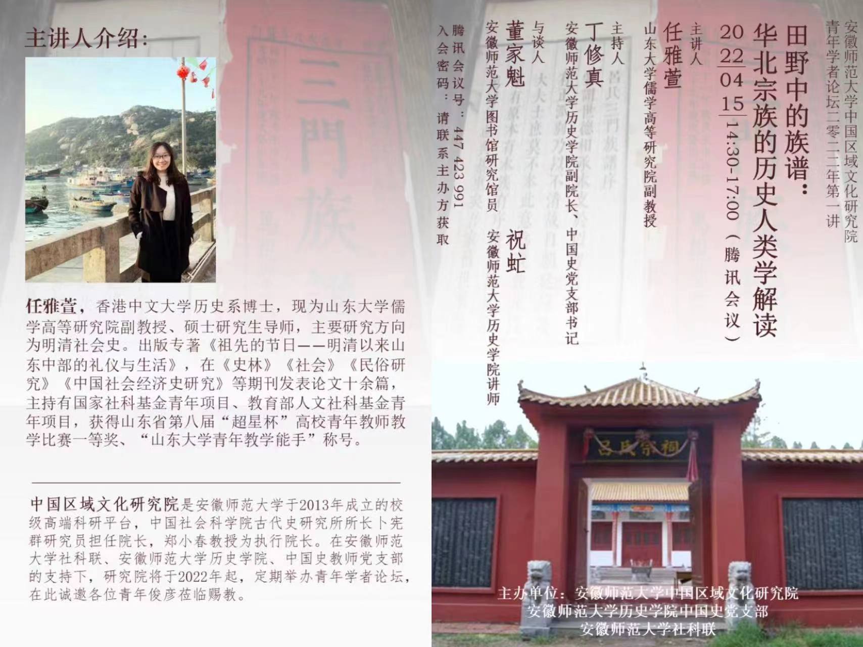 【学术预告】田野中的族谱:华北宗族的历史人类学解读(山东大学 任雅萱副教授)