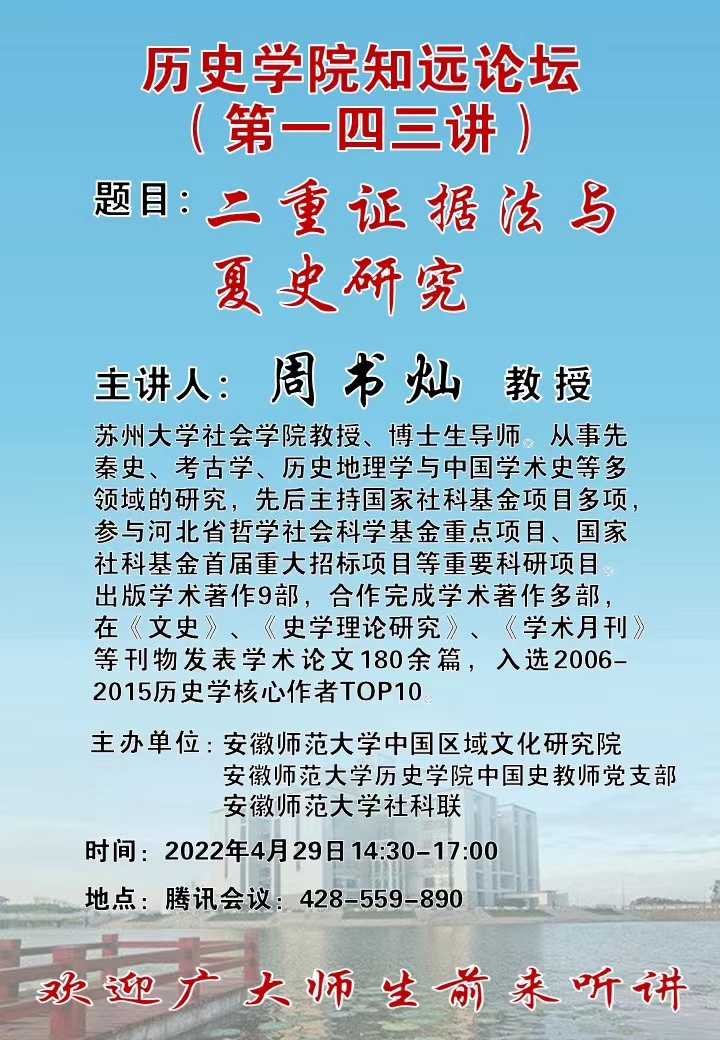 【学术预告】二重证据法与夏史研究(苏州大学 周书灿教授)