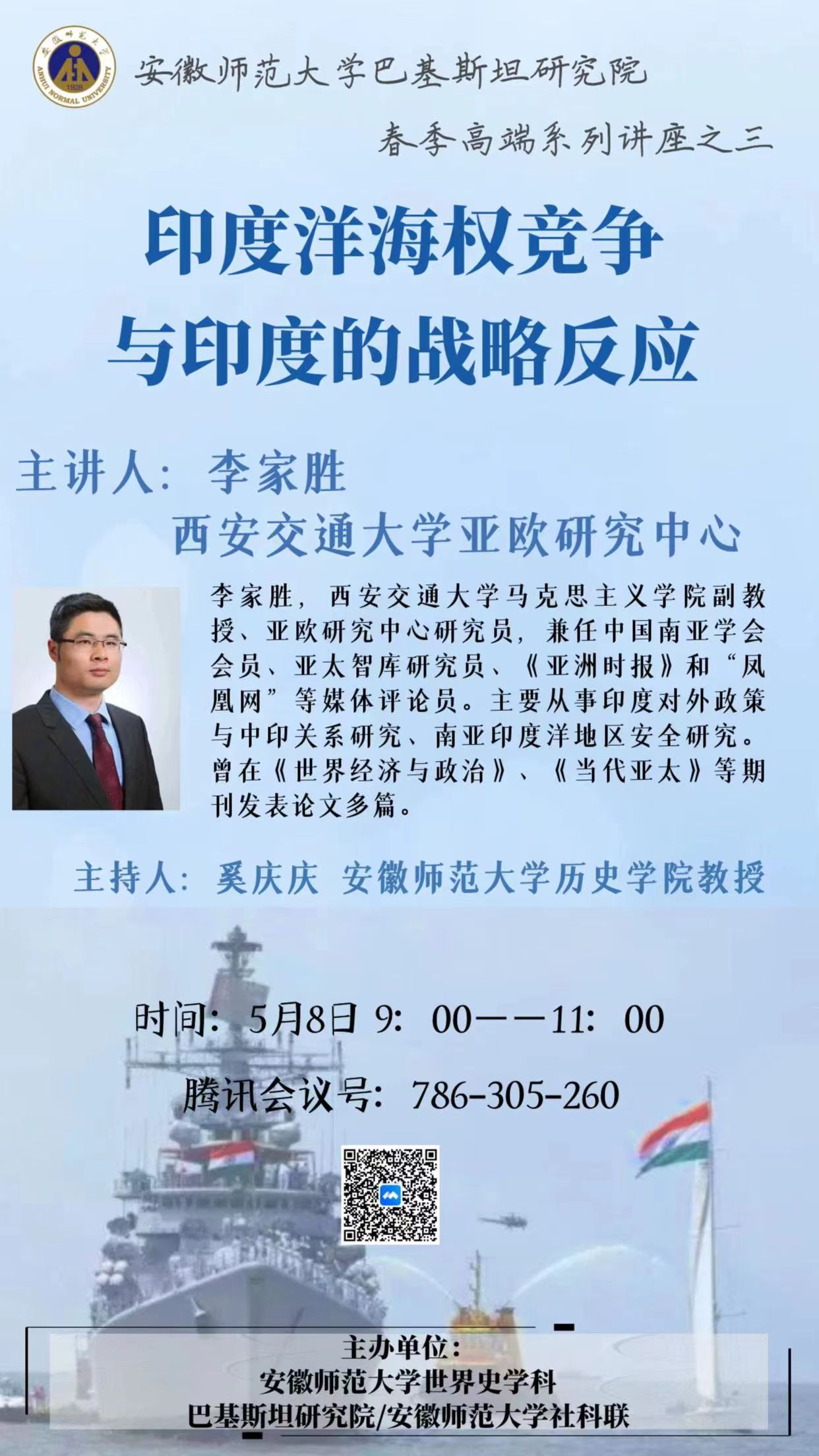 【学术预告】印度洋海权竞争与印度的战略反应(西安交通大学 李家胜副教授)