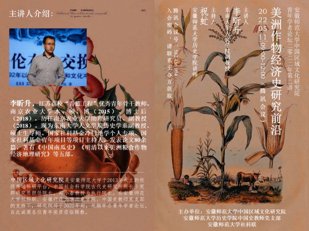 【学术预告】美洲作物经济史研究前沿(东南大学 李昕升副教授)