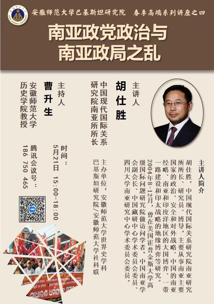 【学术预告】南亚政党政治与南亚政局之乱(中国现代国际关系研究院 胡仕胜)