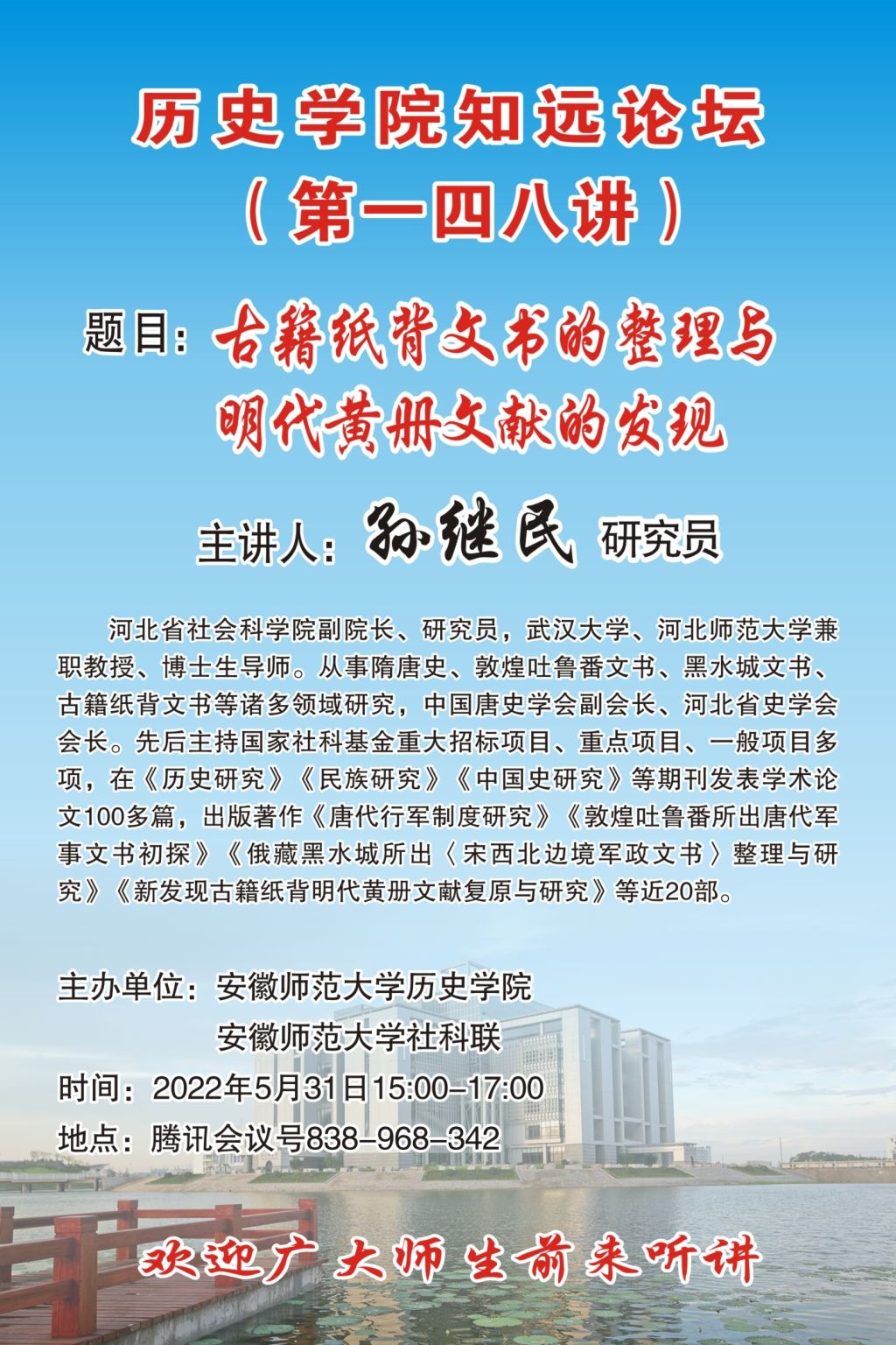 【学术预告】古籍纸背文书的整理与明代黄册文献的发现(河北省社会科公司 孙继民研究员)