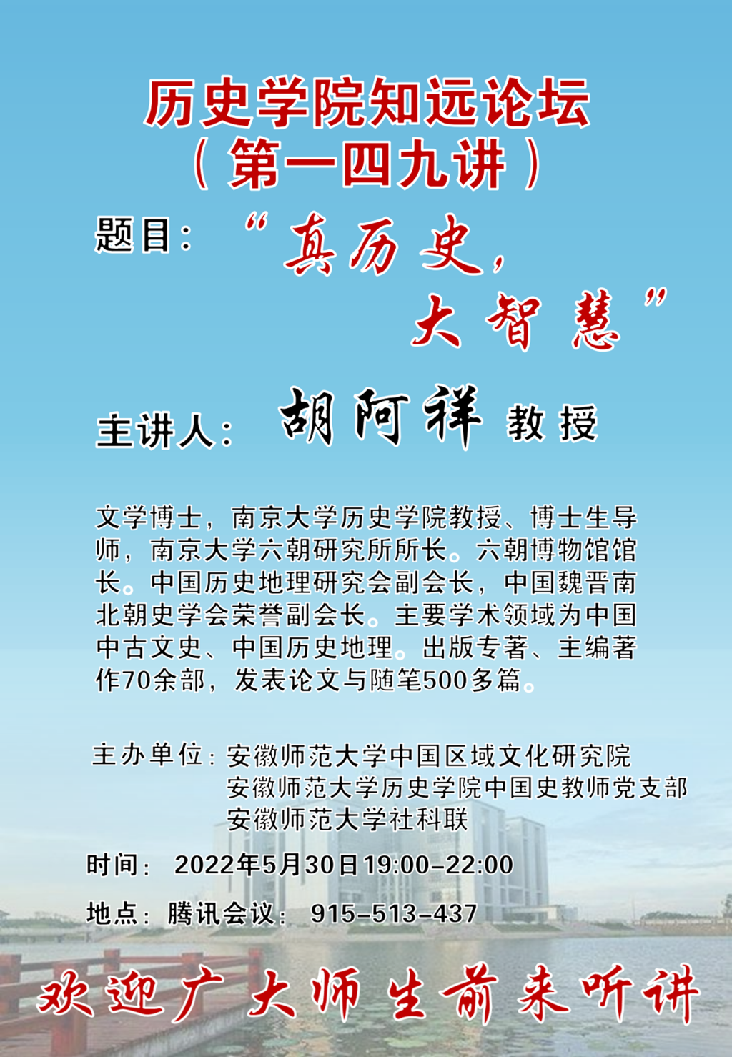 【学术预告】“真历史,大智慧”(南京大学 胡阿祥教授)