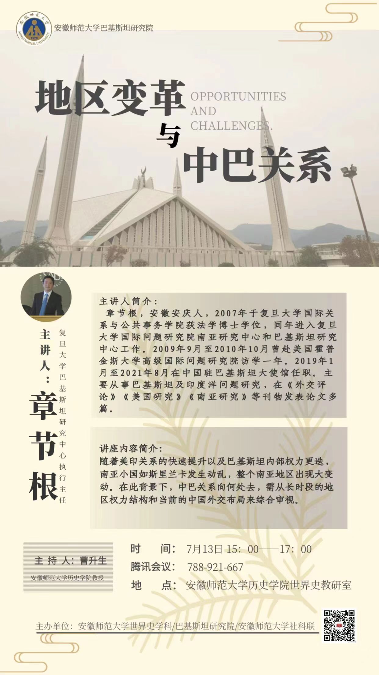 【学术预告】地区变局与中巴关系(复旦大学 章节根副教授)