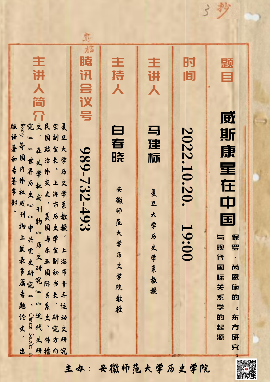 【学术预告】威斯康星在中国:保罗·芮恩施的“东方研究”与现代国际关系学的起源(复旦大学 马建标教授)