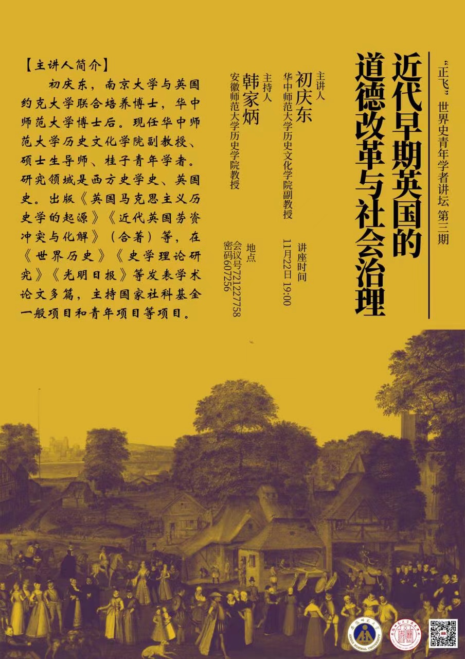 【学术预告】近代早期英国的道德改革与社会治理(华中师范大学 初庆东副教授)