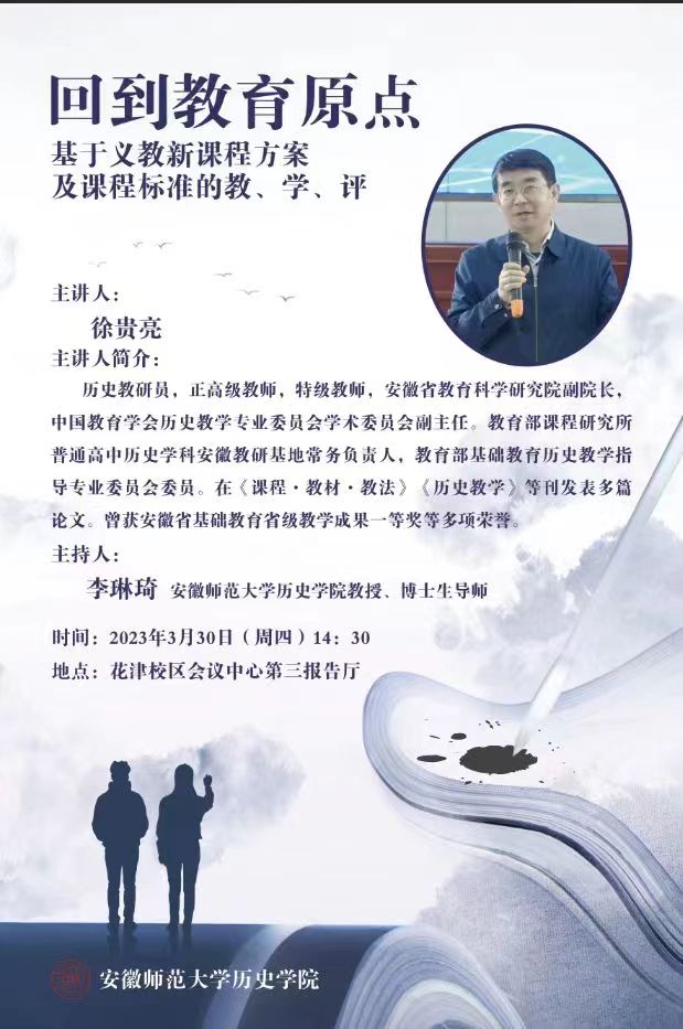 【学术预告】回到教育原点——基于义教新课程方案及课程标准的教、学、评(安徽省教育科学研究院 徐贵亮副经理)