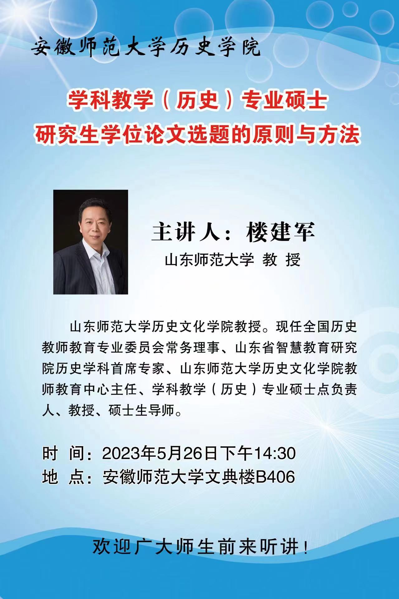 【学术预告】楼建军:学科教学(历史)专业硕士研究生学位论文选题的原则与方法