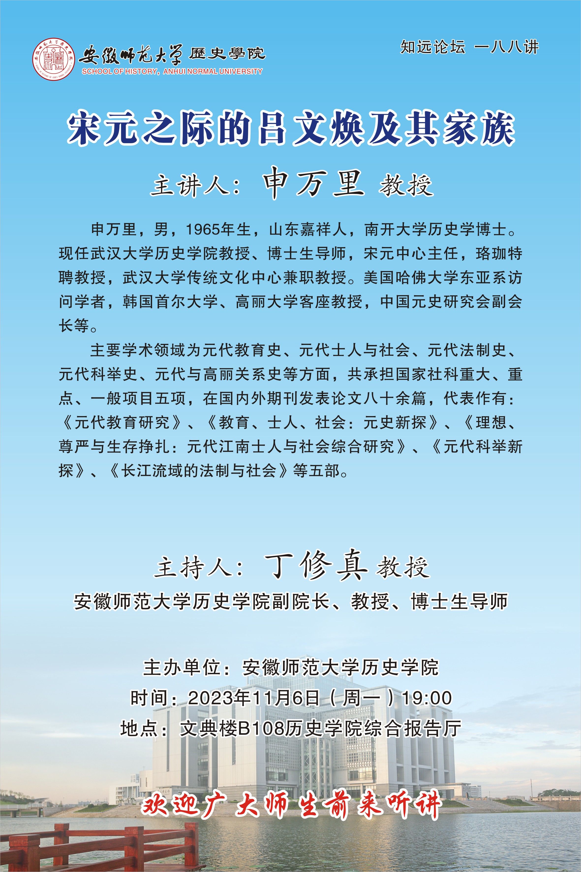 【学术预告】申万里:宋元之际的吕文焕及其家族