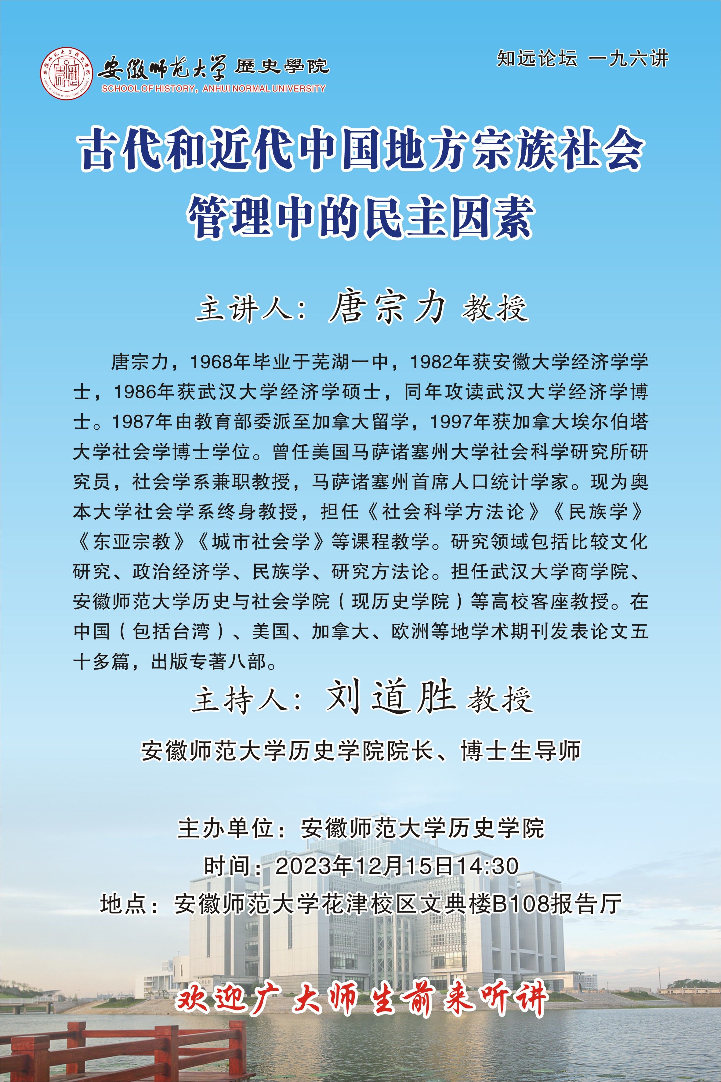 【学术预告】唐宗力:古代和近代中国地方宗族社会管理中的民主因素