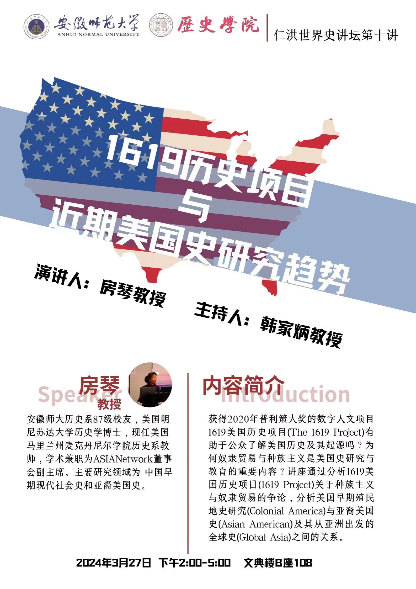 【学术预告】房琴:1619历史项目与近期美国史研究趋势