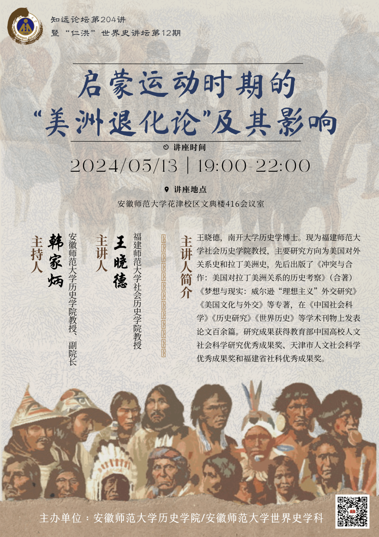 【学术预告】王晓德:启蒙运动时期的“美洲退化论”及其影响