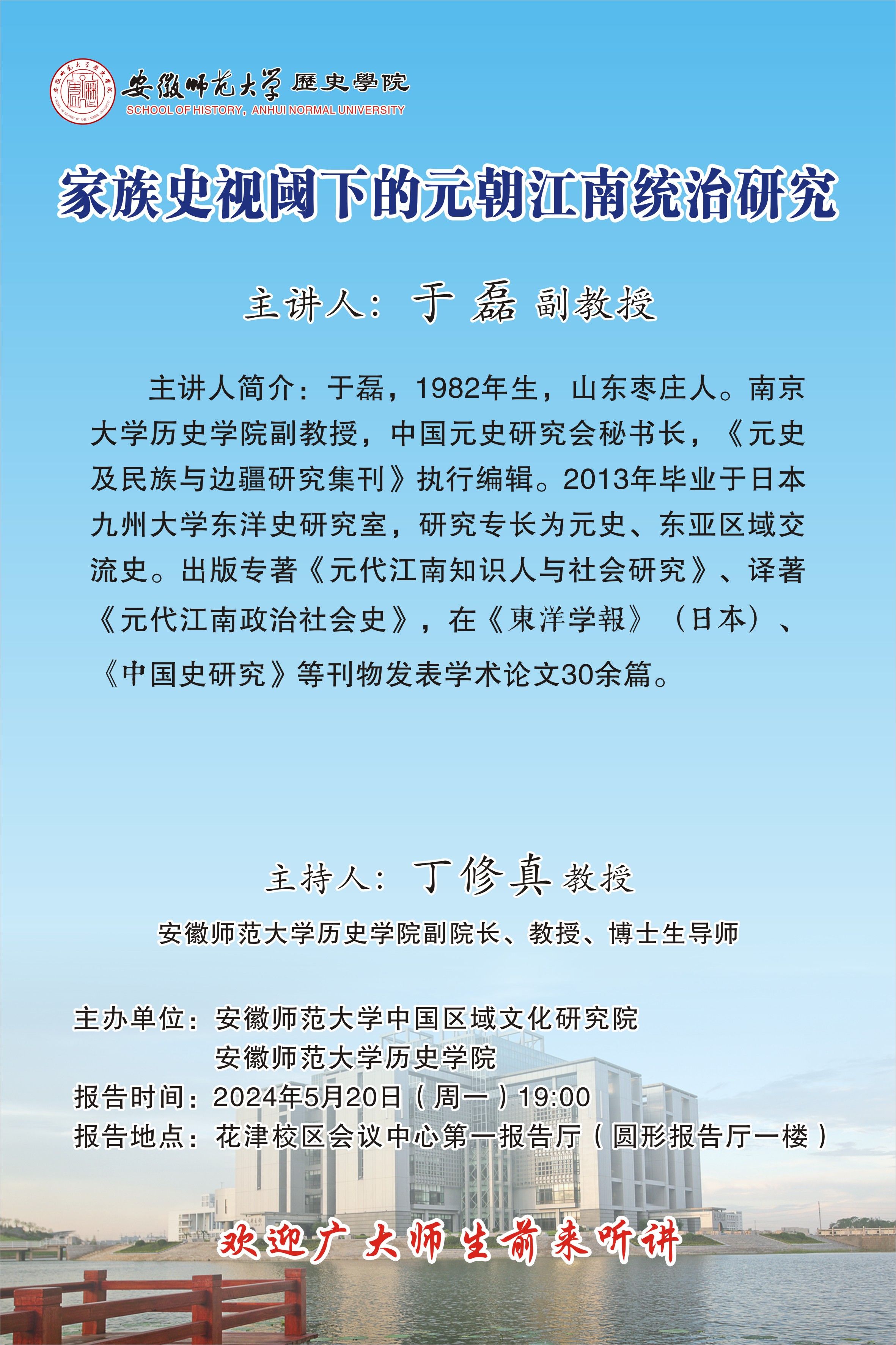 【学术预告】于磊:家族史视阈下的元朝江南统治研究