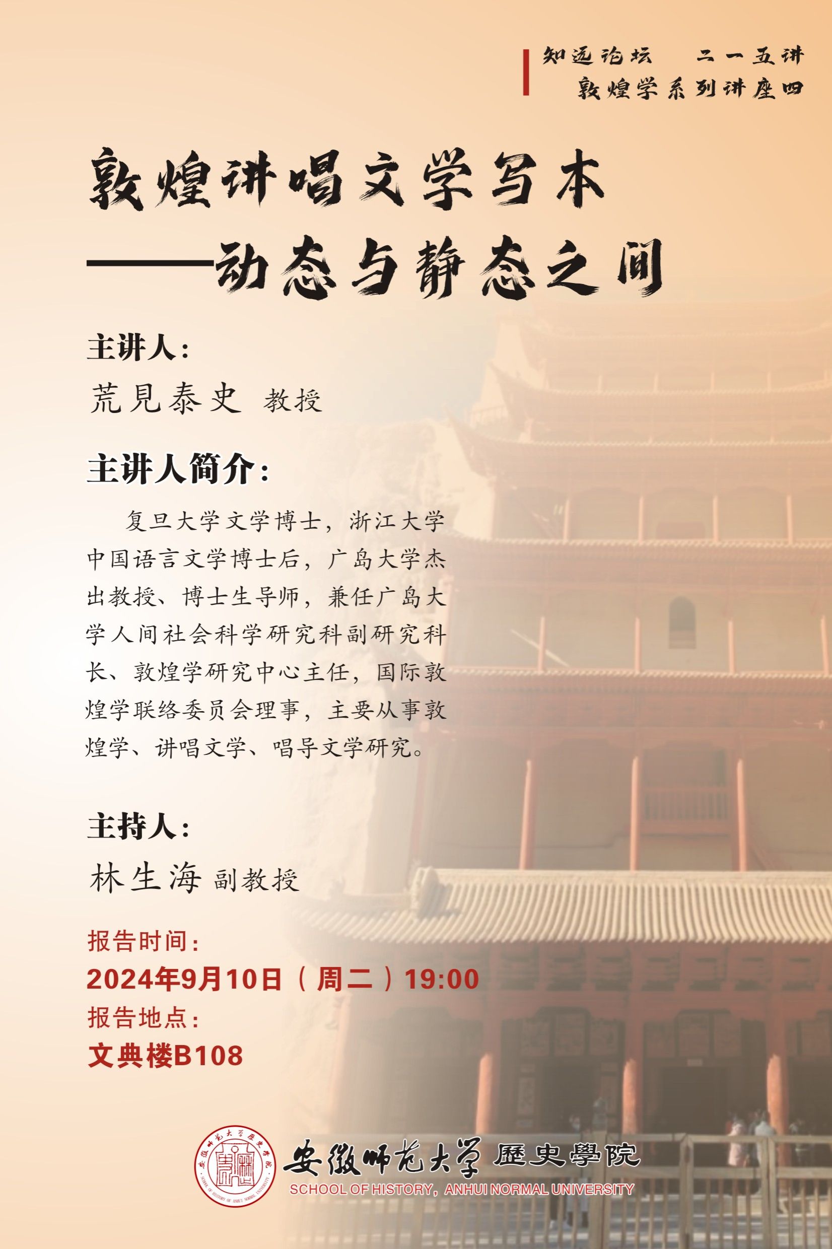 【学术预告】荒见泰史:敦煌讲唱文学写本——动态与静态之间