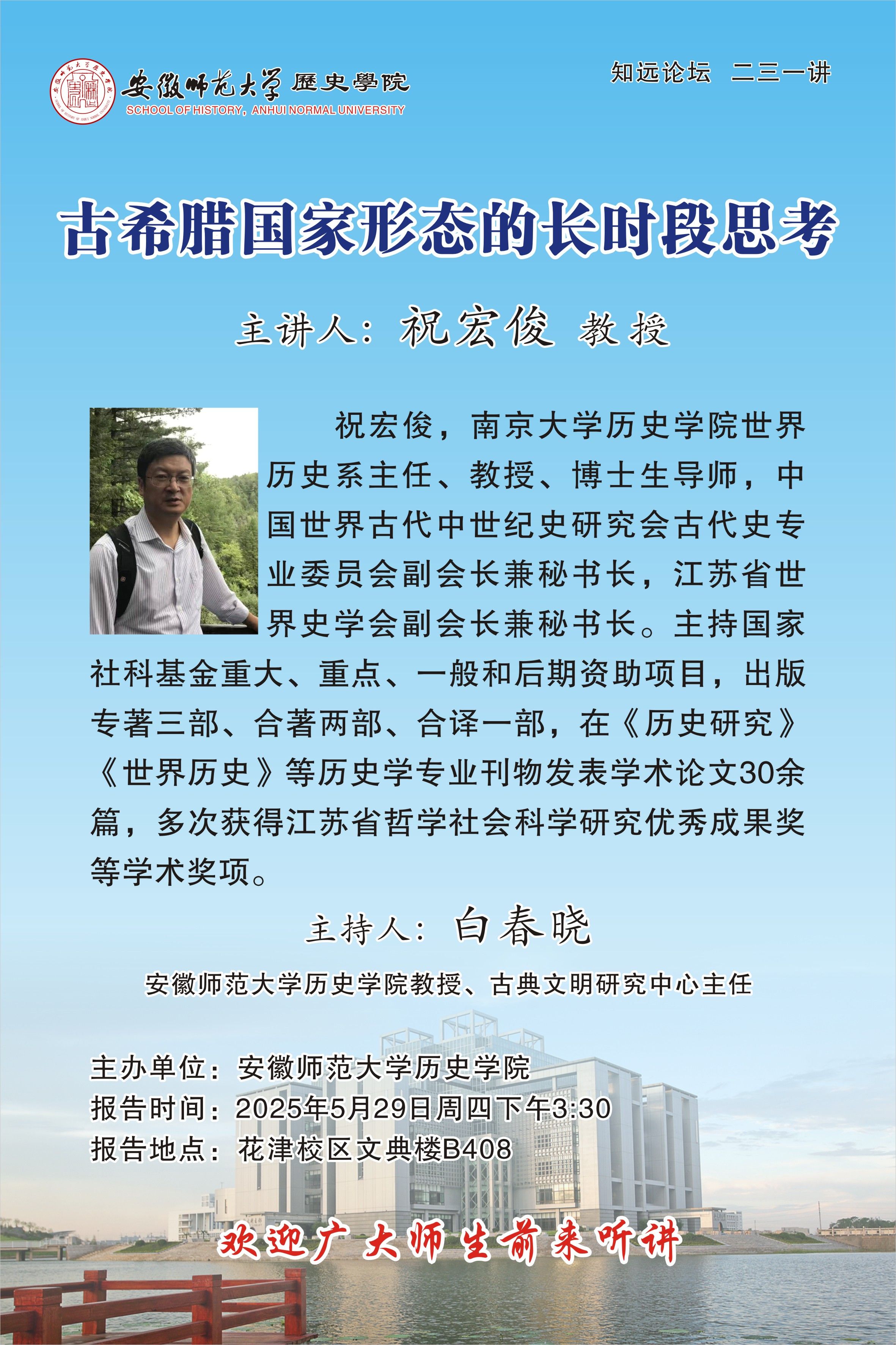 【学术预告】祝宏俊:古希腊国家形态的长时段思考