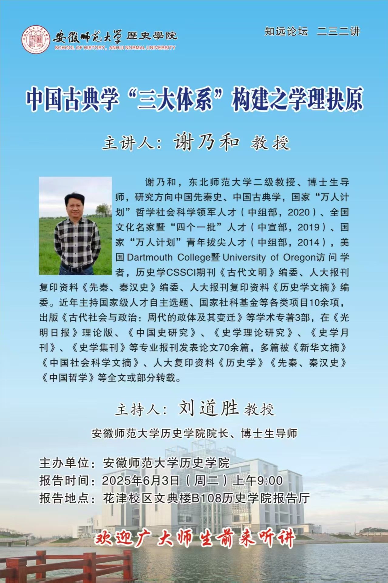 【学术预告】谢乃和:中国古典学“三大体系”构建之学理抉原