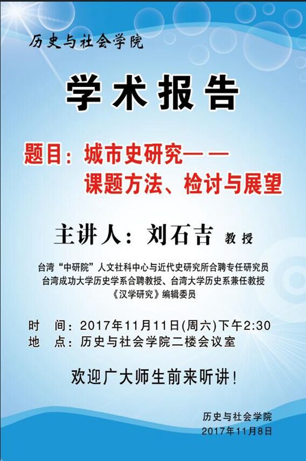 学术报告会通知(台湾“中研院” 刘石吉研究员)
