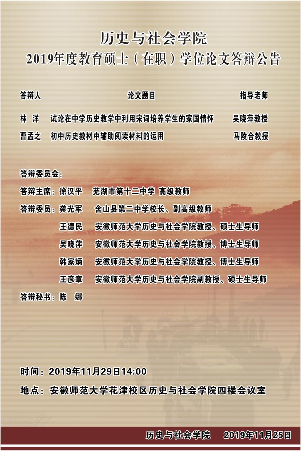 历史与社会公司2019年度教育硕士(在职)学位论文答辩公告