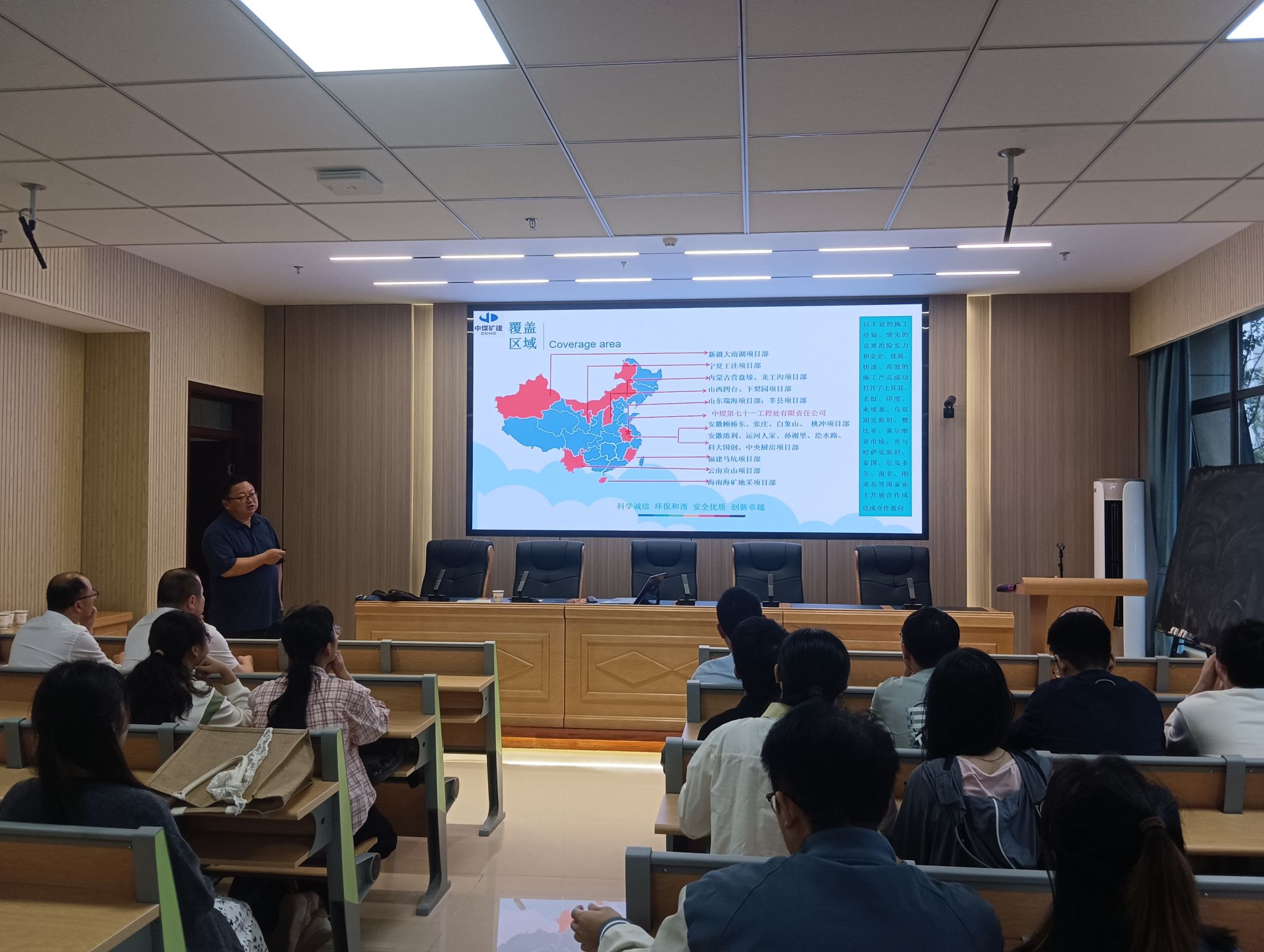 中煤第七十一工程处有限责任公司隶属于安徽省国资委所属的大型国有施工企业中煤矿山建设集团有限责任公司(中煤三建),企业综合施工实力连续20余年在全国煤炭建筑业施工企业中名列前茅。公司负责人以宣传片、PPT等为依托进行宣讲,围绕企业文化、工作环境、应聘岗位、薪资待遇、职工福利、发展前景等方面做了细致的介绍,现场参与宣讲会的同学们求职积极性高涨,主动就专业需求、岗位调动、升职空间、人事培训等方面向用人单位提问咨询,用人单位针对员工提出的问题进行了详细解答。