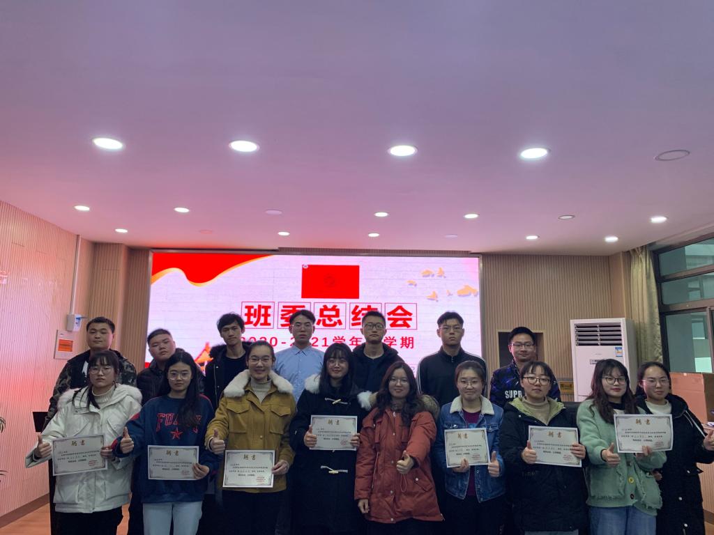 班委发言完毕后,辅导员周老师对班委工作做出点评,一是对全体班委们的工作予以肯定和鼓励,并对大一学年任职班委颁发聘书,着重表扬了坚守岗位继续留任的班委。二是对班级本学期工作做总结,对班委提出四点要求:1.作为员工干部,需要端正思想,端正态度,戒骄戒躁;2.要养成良好的表达能力和沟通能力;3.要主动发现并解决班级建设中存在的问题;4.谨记班委身份,发挥榜样作用。最后,对下学期班级工作开展提出计划意见和建议。此会议结束后,辅导员周老师和全体班委进行了合影留念。