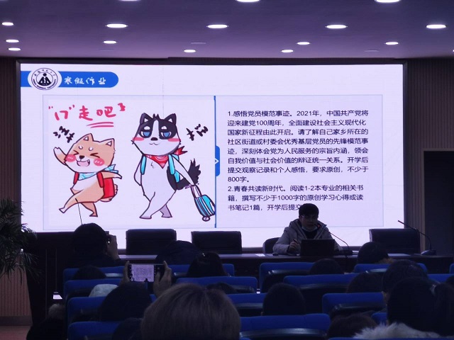 本次班会主要围绕安全问题开展——寝室安全、旅途安全、防疫安全和假期生活。朱老师告知同学们假期离校和开学报到时间,统计了详细的离校行程表,每位同学签字确认。班级也和每位家长确认行程,要求家长在员工到家后及时报平安,每位同学离校、到家都在班群内实时汇报,并借助今日校园定位功能每天定位打卡。朱老师还提醒大家离校之前要做好宿舍卫生清扫工作,断水断电,关好宿舍门窗;在回家途中注意人身、财产安全,带好相关证件,保护好自己,注重个人防护,戴好口罩,及时消毒。关于疫情常态化防控工作,朱老师向同学们强调了每日健康打卡的必要性,要求同学们寒假期间每天按时上报自己的健康情况。关于假期生活方面,朱老师希望同学们要注意文明、注意饮食、注意安全,也要注意学习,认真完成公司布置的寒假作业,抓住宝贵的寒假时间,多多提升自我。