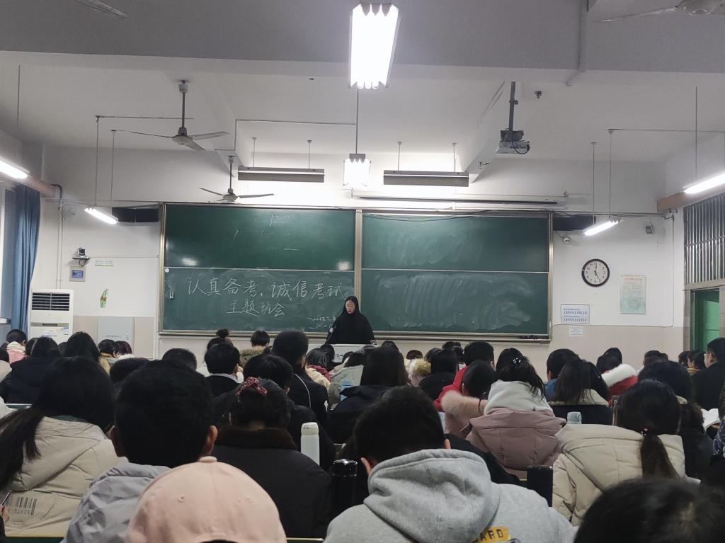 (本网讯 陈照飞)期末考试将至,为了培养同学们树立诚信考试,文明做人的理念,以积极向上的状态迎接即将到来的期末考试,12月29日晚,2020级社会工作班级于教学楼召开了以“认真备考,诚信考试”为主题的班会,此次班会由辅导员芮雪老师主持。