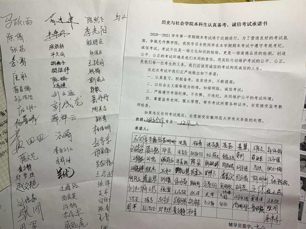 辅导员首先向大家明确了考试作弊是不可取和严重错误的,并介绍了以往部分同学作弊的手段和被处罚的结果,考试中作弊同学的处罚结果,同学们深刻认识到了公司对于员工诚信意识培养、“诚信应考”的重视及对作弊现象的坚决打击,告诫大家诚信考试,杜绝一切作弊行为,尽自己的努力去考试。同学们纷纷表示要诚实应对考试,最后大家一起在诚信考试倡议书上签字。