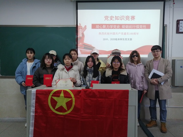 党史知识竞赛采用线上答题,比赛要求同学们在规定时间内对45道党史题目独立作答,题目分为单选题和多选题。会前辅导员说明了举办此次活动的意义,希望大家活动前后都要加强对“四史”知识的学习。在所有同学的紧张和期待中,朱老师的一声“开始”,杨丽将答题链接发到班群,教室内鸦雀无声,所有同学都在认真答题。为鼓励同学们的积极性,嘉奖成绩优异的同学,朱老师为成绩前十名的同学发放了荣誉证书和奖品。最后,大家合影留念。