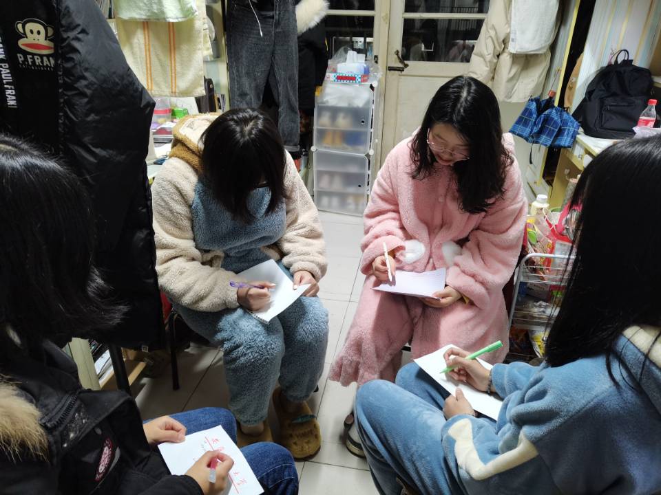 本次生活会分男生寝室和女生寝室两个部分,男生寝室位于28栋,女生寝室位于36栋。首先,班长战毓同学将卫生文明检查办法分发给各寝室,并将其张贴在寝室显眼位置,并在寝室长的带领下集体学习。同学们在学习文件后,将以文件中的标准要求每个寝室成员,注意寝室清洁。