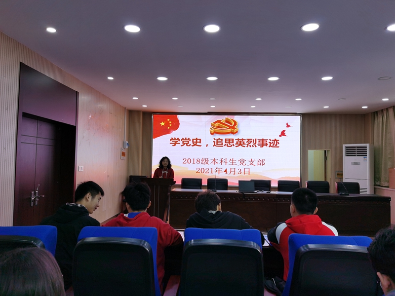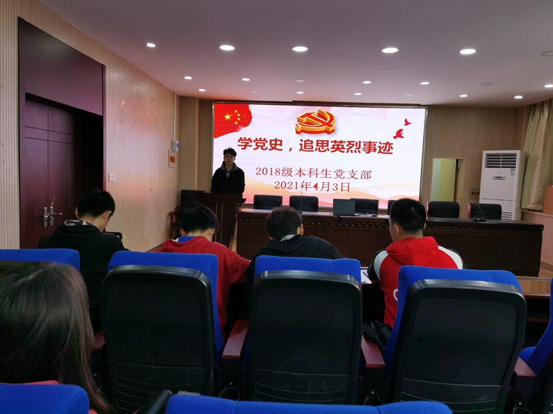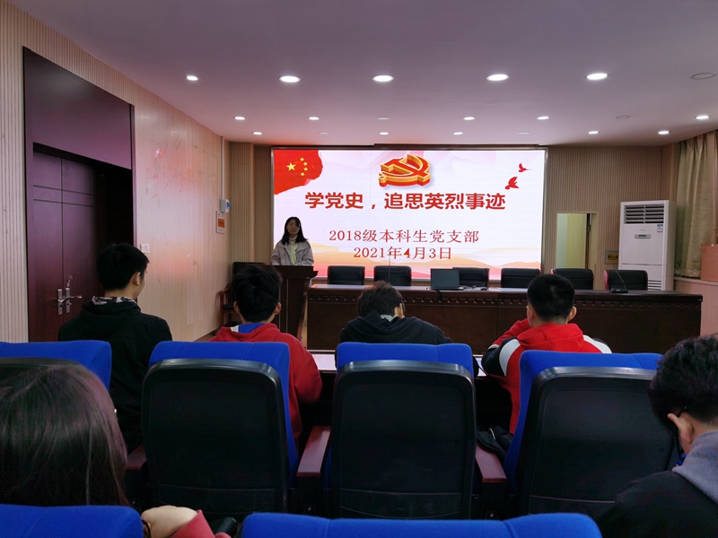 本网讯(宣传委员 韩雪)为做好党史学习教育,追思革命英烈事迹,传承红色基因,4月3日上午,2018级本科生党支部在公司二楼报告厅组织部分党员、入党积极分子开展“学党史,追思英烈事迹”活动。