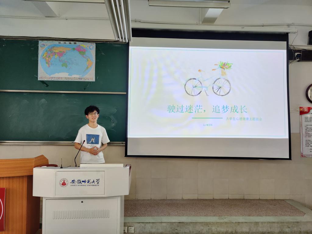 本网讯(2019级世界史 褚玉琦 马志伟)为了解班级同学心理健康状况,帮助大家舒缓心理压力,引导同学们坚守理想信念,以积极向上的生活态度献礼建党百年,2019级世界史于5月25日下午4点在2040102教室举行了“危机、理性、成长——驶过迷茫,追梦成长”为主题的心理健康班会。会议由辅导员周玲燕老师指导,班级心理健康委员褚玉琦主持,19世界史全体同学参会。