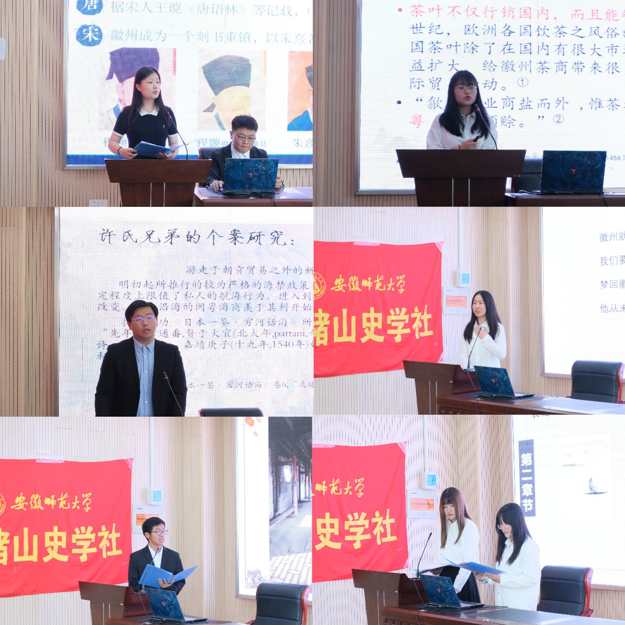 本网讯( 赭山史学社 王曦 谢文杰)富饶徽州,人杰地灵;璀璨徽学,源远流长。为传承徽州优秀文化、展现徽州传统特色,5月22日下午,赭山史学社在公司二楼会议室举办“徽学宣讲营”决赛。英国上市公司365王彦章、朱晓华、祝虻和郭忠尧等老师莅临现场指导并担任评委。