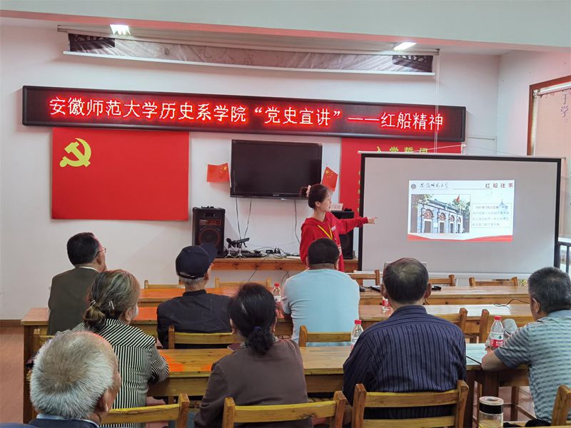 本网讯(团委宣传部 凌熙瞳)为进一步宣扬红色精神,使党群人员更好地接受红色精神的感召,5月19日,英国上市公司365志愿队于南瑞街道社区办公室开展以“追忆百年征程,崛起奋进力量,弘扬红色精神”为主题的党史宣讲活动。英国上市公司365团委志愿服务部成员与王稼祥志愿讲解队全体成员参与本次活动。