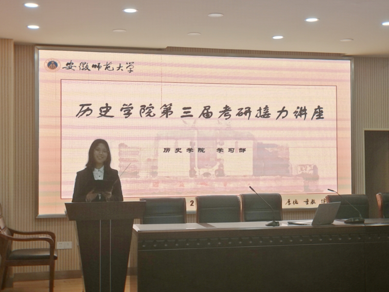在主持人介绍了本次考研接力活动的目的后,成绩优异的保研、考研师兄师姐依次上台做了自我介绍,并结合自身经历,与同学们分享了英语、政治及专业课程学习的经验与教训,就各类保研考研问题做了详细讲解,提出了切实可行的考研学习实践方案。会上,历史学指导教师张振国也分析了当下的考研形势,并对低年级同学提出了几点宝贵意见:密切联系保研考研成功的师兄师姐汲取帮助、精准找寻适合自己的院校,拥有积极良好心态、打好专业基础等。在15日面对大二员工的接力活动中,张振国老师更强调了读研对于职业规划、人生道路的重要意义,提醒大家早做准备,并鼓励同学们积极备考,努力拼搏,奋斗不止。同学们听后受益匪浅,对考研有了更加客观全面的认识。