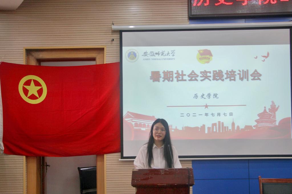 2018级历史学陆逸为同学们进行宣传培训,她向大家强调了宣传工作在实践中的重要性,并具体介绍了前期准备、实践中、实践结束后不同阶段的宣传工作侧重点,同时特别强调了实践中拍照的技巧,以及向中青网等网站投稿时的稿件格式、内容要求等,她鼓励各团队利用好各类宣传渠道,扩大实践影响力。