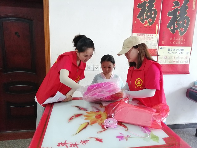 此次活动共为9名留守儿童赠送了“爱心礼包”,包括书包、文具、书籍、手写明信片、跳绳等物品,采购经费为薪火·星望志愿服务队义卖和回收废品所得,义卖物品全部来源于芜湖市弋江区自闭症儿童手工制作的作品。通过入户走访的形式,详细了解留守儿童的家庭和学习情况,对留守儿童及其监护人开展预防溺水、交通安全等宣传教育,帮助留守儿童度过一个平安、快乐的暑假。