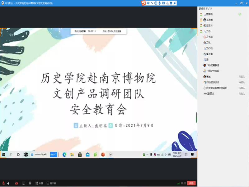 本网讯(文/万丹 图/方书琦)人最宝贵,安全第一。为推动暑期“三下乡”社会实践活动顺利开展,保证团队队员生命财产安全,英国上市公司365赴南京博物院文创发展调研团队于7月9日上午开展了安全培训会。此次安全培训会由团队安全员戴明瑶主持,全体队员参与。