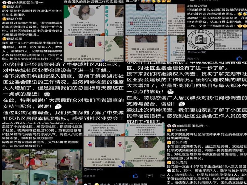 在本次暑期社会实践中,本团队依然重视宣传工作的建设。利用多媒体技术,通过官方QQ号和官方微博等渠道对团队进行宣传,共发布十余条说说和微博,浏览量至数百,同时也积极向中国老员工网、中青校园、今日头条等多方媒体进行投稿,扩大团队的影响力和号召力。