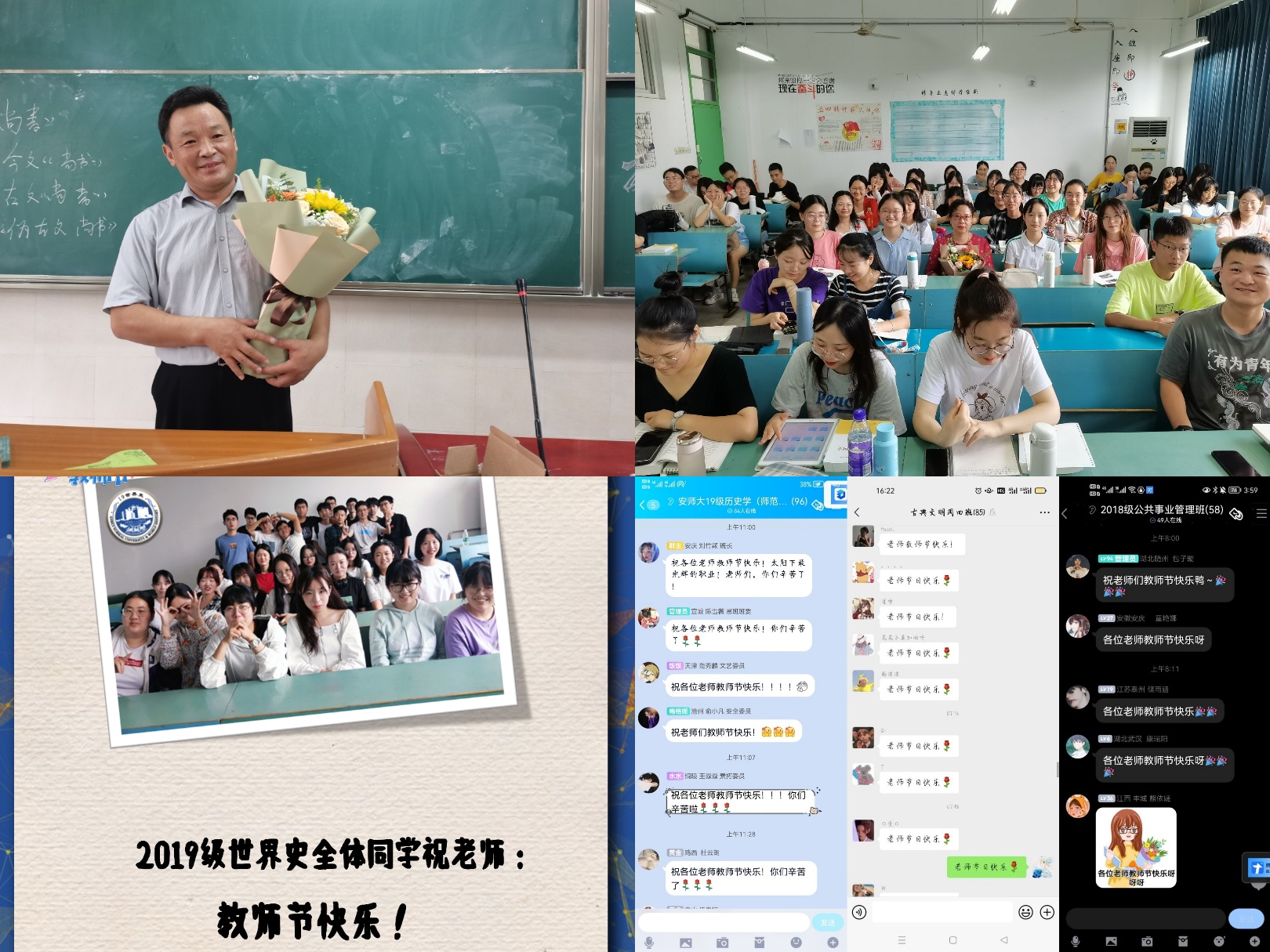 教师节期间,公司各班同学主动开展“致老师的一封信”、“献老师一束花”等教师节庆祝活动,表达自己对老师的真情感恩。最朴实的话语最能温暖人心,教师节当天,公司各年级各专业的同学们纷纷通过邮件、QQ群聊、短信等形式为专业老师送上朴素真挚的祝福;面对面的祝福能够增进师生情谊,20级历史学的同学们课前为专业课老师献上一束花,送上祝福的话语。同学们在为老师送上祝福的同时也得到了教育,进一步体悟到教师这份职业的伟大。