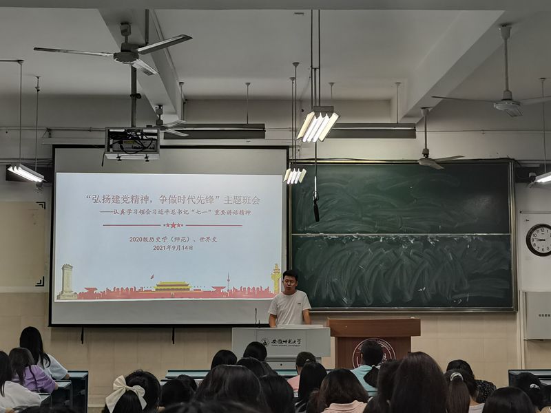 本网讯(宣传委员 李静)为教育引导员工学党史、知党情、颂党恩、跟党走,2020级历史学、世界史于9月14日晚召开“弘扬建党精神,争做时代先锋”主题班会。主题班会由辅导员郭忠尧主持,全体同学参与。